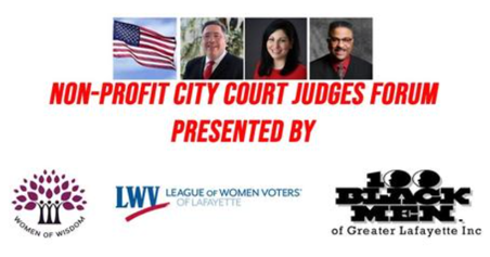 In October of 2022, LWV Lafayette partnered with two local organizations, Women of Wisdom and 100 Black Men of Greater Lafayette to host a candidate forum for Lafayette City Court Judges.